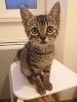 Frites est une chatonne un peu timide qui aura besoin de temps pour s'adapter à un nouvel environnement. C'est une chatonne très curieuse, joueuse et ronronneur professionnelle qui demande des câlins une fois mis en confiance. Ententes connues : ok chats Frites est adoptable contre une participation aux frais vétérinaires de 85 euros.