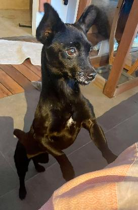 Née le 01/01/2018 Cafrine est identifiée vaccinée stérilisée déparasitée, petite pinscher X de 4 kgs.
