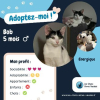 Bob c’est le chaton le plus joueur et le plus rigolo de ses frères. Toujours partant pour jouer, il adore que son humaine lui jette une balle, une plume, une petite souris. C’est un chaton rusé et très intelligent ! Bob est aussi très affectueux. Il prend soin de ses frères, mais aussi de son humaine qu’il cajole sans fin dans le lit ou le canapé. Bref, un petit amour ce Bob !