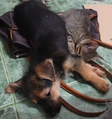 KALIKO est un chaton, il aura tout à apprendre. il vit chez Lenuta avec des chatons un chat et un chiot.