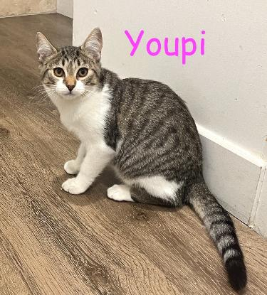 Youpi, femelle 5 mois, discrète, gentille et timide. Une fois que Youpi est en confiance, elle se montre très câline, elle aura besoin de patience pour être à l’aise.