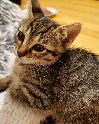 Je suis une petite minette tigrée de 8 semaines