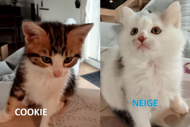 Cookie blanc tigré et Neige blanc nous avons été trouvé avec notre maman et notre grande soeur.