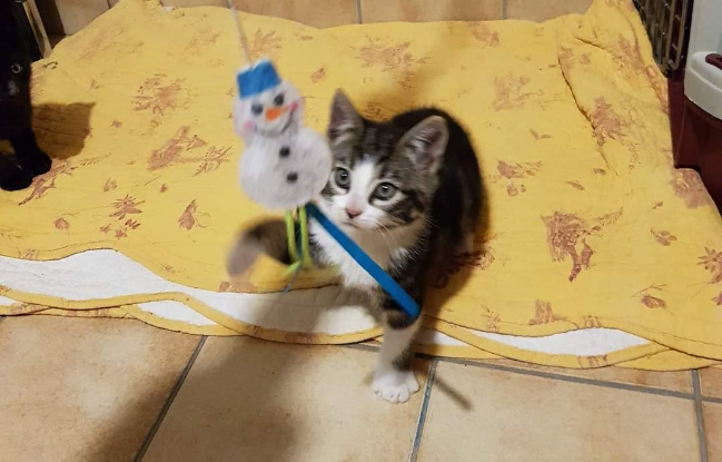 Petit chaton MIOU, d’environ 2 mois joliment tigré.