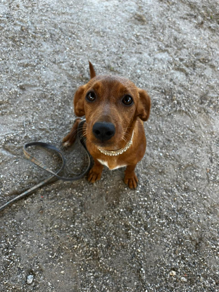 Je m’appelle Chocolat, je suis une adorable croisée teckel de 6 mois, née en mai 2024. Je serai une chienne de petit gabarit. Avant mon arrivée au refuge DOGGY OASIS INTERNATIONAL, j’ai été trouvée et sauvée par un particulier avec ma mère et mon frère.