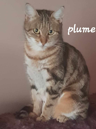 Plume a été trouvée sur un site de nourrissage, elle errait là depuis plusieurs mois, l'association la prise en charge pour l'identifier et stériliser mais n'a pas pu la remettre dehors étant sociable. préfère l'exclusivité sans autres animaux