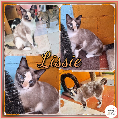 LISSIE est une adorable petite chatte, douce, tranquille, qui se laisse toucher sans problème.