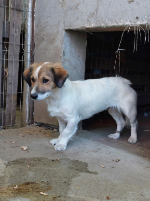 Clara est une petite chienne sensible qui a besoin de prendre confiance. Elle vient au grillage prendre les friandises et reste un peu plus sur la réserve lorsque l'on rentre dans son box .