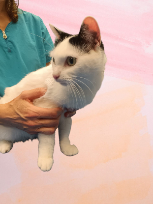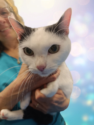 Pénélope est un chat Femelle, type Européen, Couleur Blanc et Noir, identifiée, stérilisée, testée négative aux maladies félines FIV, FELV, vermifugée par nos soins.