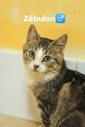 Son frère Zébulon, est un peu plus timide, craintif mais pas du tout agressif et très joueur. C'est un gentil chaton.