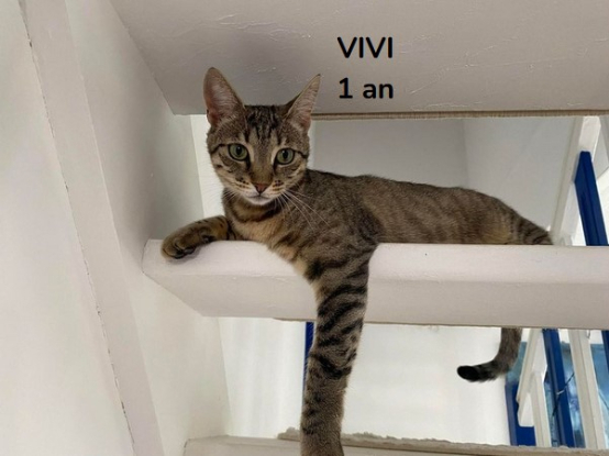 Vivi est une jeune minette d'environ 1 an 1/2. Très sociable, elle est très câline. Elle a été trouvée dehors gestante et a été avortée. Des recherches de propriétaire ont été effectuées, mais personne ne l'a réclamée... bien sûr elle n'était pas identifiée. Nous l'avons mise en règle et avons effectué tous les soins nécessaires, elle a ensuite été adoptée, mais nous a été rendue pour cause d'allergies !