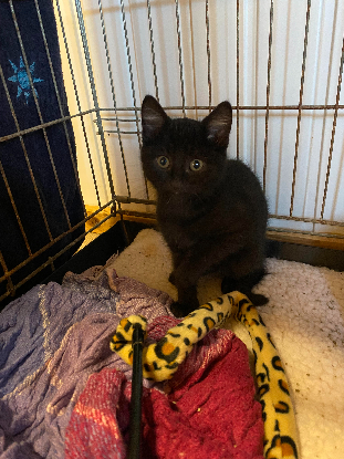 Wesley est un adorable chaton noir un peu zébré de 2 mois. Il pourra donc bientôt partir à l'adoption. Il est le moins craintif d'une fratrie de 3, piégés avec leur mère sauvage dont on les a séparé très récemment. Il est donc toujours en cours de sociabilisation mais à cet âge là, ça va très vite. N'hésitez pas à venir le rencontrer. Il aime jouer et ronronne lorsqu'on le caresse.