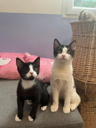 > Poséidon est identifié par puce électronique, vacciné TC et déparasité. P'tit Jack est identifié par puce électronique, il sera vacciné prochainement. Leurs opérations de castration et test FIV/FELV seront à réaliser à leurs 6 mois.