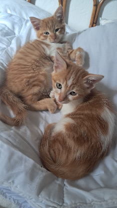 Ce sont deux amours de petites chattes. Câlines, joueuses et proche de l'humain auprès de qui elles aiment dormir. Elles sont ok chats, chiens et enfants