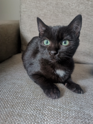 Isis est un adorable chaton noir de 3 mois 1/2 avec des yeux verts (pas sûre qu'il les garde en grandissant)