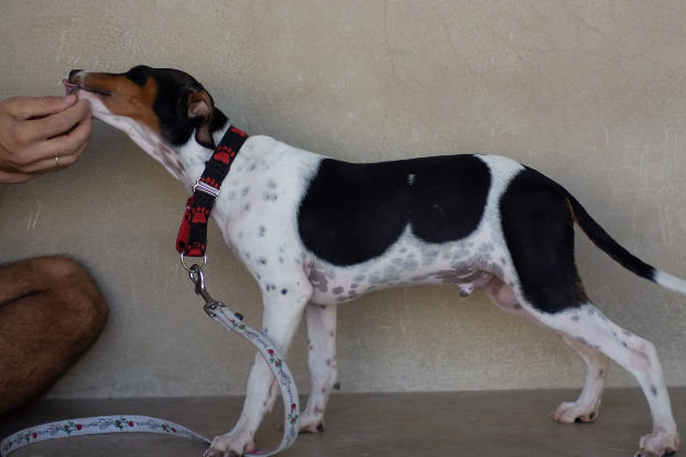 Bady est un mâle croisé de Braque et Bodeguero né en Mai 2024 et arrivé au refuge en Juillet 2024. Il sera probablement un chien de taille moyenne, pesant aux alentours de 15 Kg.
