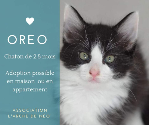 Oréo est identifié, déparasité interne & externe et primo vacciné TCL (Typhus, Coryza, Leucose).
