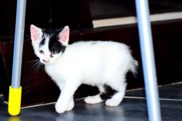 On m'a appelé comme ça parce que j'ai une petite tache sur le dos en forme de "." . J'ai été trappé avec mes frères et des copains dans une grange. On avait jamais vraiment vu d'humains de nos vies mais je me suis très vite habitue. Voilà ce que ma FA dis de moi : Petit Point c'est un petit chaton PARFAIT. Que dire de plus?! Il est rigolo il a une démarche de top model il se dandine à chaque pas. Il est calin, joueur, avenant, curieux . En vérité c'est notre vrai chouchou... Il a su se faire aimer à la première seconde avec sa petite tête et son petit corps tout fin. Il lui faudra une famille EN OR MASSIF! Il connaît les chiens et n'en a pas peut particulièrement s'ils sont doux, il va facilement vers les autres chats sans se poser de question il est le grand ami des enfants. Parfait je vous dis... Il serait super content d'être adopté avec un de ses frères (il s'amuse beaucoup avec Scat cat et sa grande copine Aurora) mais s'il n'a pas de compagnon il aura besoin que vous soyez présent pour combler le vide.