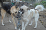 Vaya vit en liberté avec les autres chiens, c'est une petite chienne à l'aise dans ses pattounes. Elle adore jouer avec les autres chiens. Toujours la première pour lancer une course poursuite, une partie de jeux, ou une baignade générale en se jetant dans la petite piscine. Elle aime les câlins et vient en demander. Elle est touchante avec sa petite truffe abimée. Elle a une super personnalité qui se détache du lot.