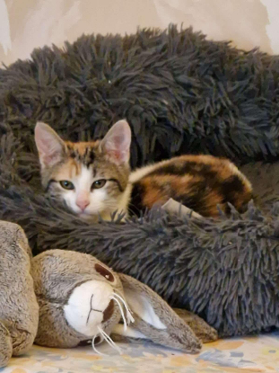 Comportement :NINA est la soeur de willi et alma, ils viennent d'un site sur pantin, elle est timide mais sociable et propre.