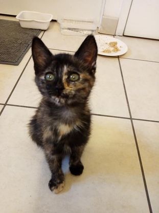 Rustine, petite chatte d'environ 2 mois. Elle est espiègle, coquine, câline et c'est une machine à ronron. Elle partira identifiée et vaccinée sous contrat d'association