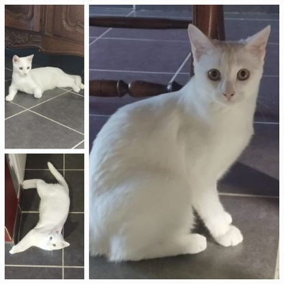 Abiba surnommée Zazou est une femelle blanche de 6 mois.