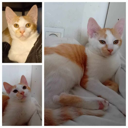 Zaoui est un mâle roux et blanc d'environ 5 mois.