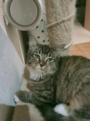 BIBI est très câlin, il adore suivre les humains, il est très joueur. Il ronronne beaucoup. Il est habitué aux jeunes enfants, il a vécu avec des chiens. Il a eu accès à l’extérieur.