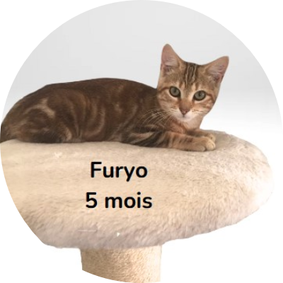 Furyo est un junior de 5 mois très joueur, gourmand, adore les câlins, se frotte et réclame des caresses, boite a ronrons, lèche, se met sur le dos pour se faire gratouiller