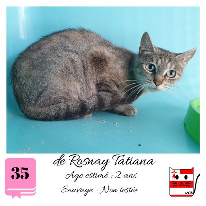 URGENCE EUTHANASIE ! De Rosnay Tatiana est une femelle de 2 ans sauvageonne (un comportement tout à fait normal en fourrière) qui vous attend dans une fourrière du 35. ATTENTION SORTIE AU PLUS TARD LE 24/07/2020 (avant euthanasie) ! Pour adopter, c'est facile : ➡️ On se rend sur la page facebook d'Urgence Fourrière de Bretagne (UFB) -> https://www.facebook.com/sosfourrieresbreizh/ ➡️ On vient en message privé sur la page UFB ➡️ On remplit le questionnaire ➡️ Si le questionnaire est validé, on se rend disponible pour la pré-visite ➡️ On se rend aussi disponible pour venir chercher le loulou en fourrière Les chats sortent de fourrière primo-vaccinés et identifiés. Restera à charge de l’adoptant le rappel de vaccin et la stérilisation qui est OBLIGATOIRE. Les femelles en fourrière ayant été trouvées dans la rue, il y a fort à parier que nombre d'entre elles en âge de l'être soient gestantes ... ---- A PROPOS D'URGENCE FOURRIERE DE BRETAGNE (UFB) Nous sommes un COLLECTIF d'ASSOCIATIONS DE PROTECTION ANIMALE (qui rassemble notamment Moustaches et Compagnie, Bêtes de Scène, les Pachas, Chats Libres de Berné, etc, etc....) Le BUT de ce collectif d'associations est donc de SORTIR ces animaux des fourrières surchargées en les faisant ADOPTER de manière LEGALE par des familles ou en leur trouvant des FAMILLES D'ACCUEIL lorsque des places en association se libèrent.