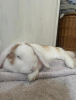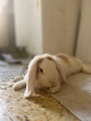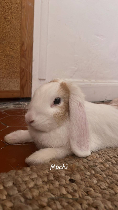 Mochi a bientôt 1 an, c’est une lapine bélier blanche avec des taches rousses. Elle est en bonne santé, elle est vaccinée et stérilisée.