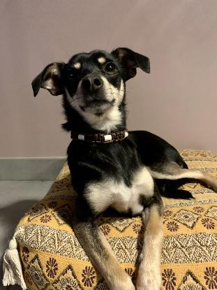 Yellow adore solliciter l'attention, être prise dans les bras et faire des câlins. Elle adore jouer, courir derrière sa balle. En extérieur, elle aime faire des courses poursuites et elle a une bonne endurance, détente, ce qui encouragerait à la pratique d'une activité sportive avec elle. C'est une chienne très dynamique malgré son petit gabarit. Elle travaille progressivement sa peur des inconnus.