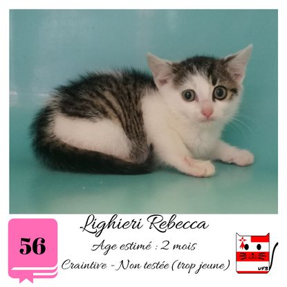 URGENCE EUTHANASIE ! Lighieri Rebecca est une femelle de 2 mois craintive (un comportement tout à fait normal en fourrière) qui vous attend dans une fourrière du 56. ATTENTION SORTIE AU PLUS TARD LE 24/07/2020 (avant euthanasie) ! Pour adopter, c'est facile : ➡️ On se rend sur la page facebook d'Urgence Fourrière de Bretagne (UFB) -> https://www.facebook.com/sosfourrieresbreizh/ ➡️ On vient en message privé sur la page UFB ➡️ On remplit le questionnaire ➡️ Si le questionnaire est validé, on se rend disponible pour la pré-visite ➡️ On se rend aussi disponible pour venir chercher le loulou en fourrière Les chats sortent de fourrière primo-vaccinés et identifiés. Restera à charge de l’adoptant le rappel de vaccin et la stérilisation qui est OBLIGATOIRE. Les femelles en fourrière ayant été trouvées dans la rue, il y a fort à parier que nombre d'entre elles en âge de l'être soient gestantes ... ---- A PROPOS D'URGENCE FOURRIERE DE BRETAGNE (UFB) Nous sommes un COLLECTIF d'ASSOCIATIONS DE PROTECTION ANIMALE (qui rassemble notamment Moustaches et Compagnie, Bêtes de Scène, les Pachas, Chats Libres de Berné, etc, etc....) Le BUT de ce collectif d'associations est donc de SORTIR ces animaux des fourrières surchargées en les faisant ADOPTER de manière LEGALE par des familles ou en leur trouvant des FAMILLES D'ACCUEIL lorsque des places en association se libèrent.