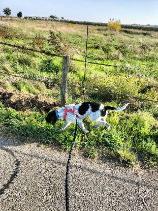 Elle découvre les promenades. Elle serait parfaite comme compagnon de cani cross. Discipline qu’elle découvre grâce à sa FA.
