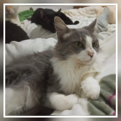 Elle a été trouvée dans la rue avec une autre chatte. Elle s'entend bien avec les autres chats il faudra éviter les familles où il y aura trop de chats.