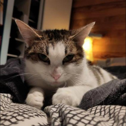Nous avons pris en charge le petit Flocon et de sa jeune maman Mélisse. Flocon a très rapidement trouvé sa famille. Aujourd'hui, Mélisse cherche la sienne. Âgée d'1 an environ, Mélisse est calme, très douce et câline. Elle aura besoin d'attention et d'interactions. Sa famille d'accueil la décrit comme un "très bon chat-bouillotte " surtout avec les températures actuelles ?. A se demander ce qu'elle faisait dans la rue ?!