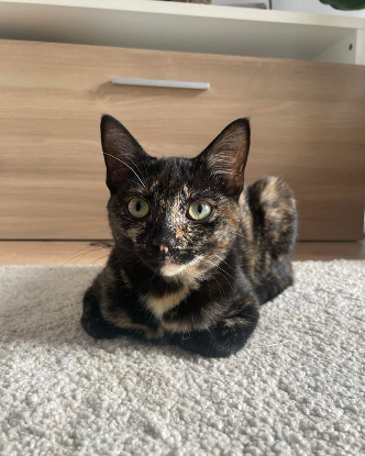 Notre magnifique écaille est plus timide que son frère et sa soeur mais elle fait de beaux progrès ! Elle s'habitue bien à l'humain et est contente de retrouver ses bipèdes quand ils sont là ! Elle n'aime pas être portée pour le moment mais apprécie tout de même les caresses ?