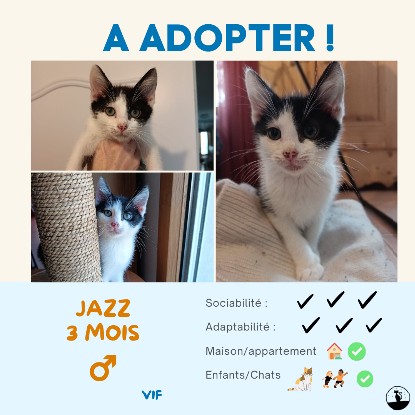 Pour Jazz nous cherchons une famille en maison ou appartement. Jazz est un chaton très heureux en intérieur. Jazz est compatible avec ses congénères chats. Aussi, il pourra très bien vivre avec des enfants ! Enfin, Jazz sera malheureux si il est seul trop souvent à la maison. C’est un chaton qui a besoin de beaucoup d’attention.