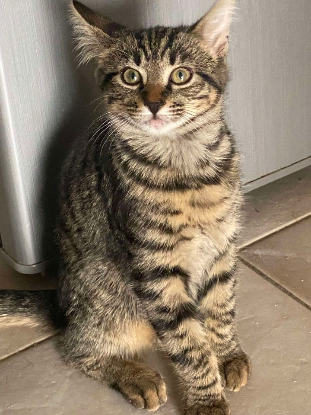 est plutôt timide mais une vraie machine à ronrons une fois qu'il se cale dans nos bras pour les câlins. Il est très joueur et vif. Une vraie boule d'amour