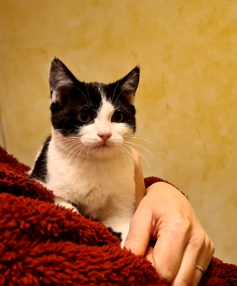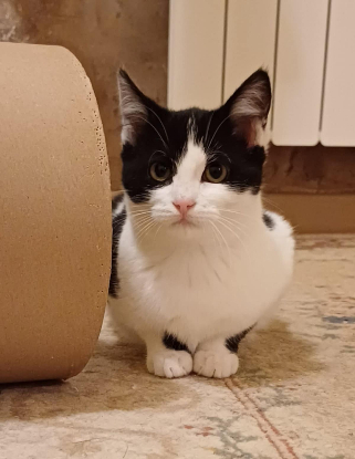 Bobine est la plus timide. Elle recherche des adoptants très patients qui l'aideront à s'épanouir par le jeu et les câlins.