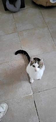 café est un chaton de 8 mois vraiment très sociable, qui aime venir se blottir et faire des câlins