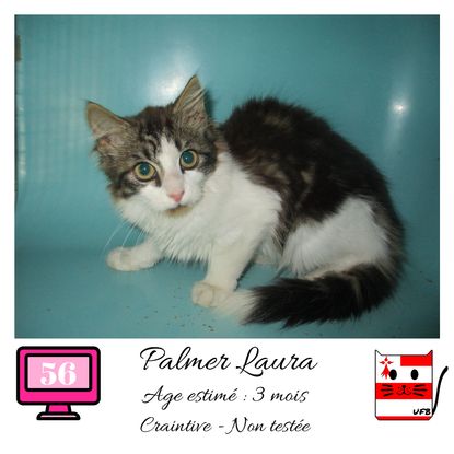 URGENCE EUTHANASIE ! Palmer Laura est une femelle de 3 mois craintive (un comportement tout à fait normal en fourrière) qui vous attend dans une fourrière du 56. ATTENTION SORTIE AU PLUS TARD LE 31/07/2020 (avant euthanasie) ! Pour adopter, c'est facile : ➡️ On se rend sur la page facebook d'Urgence Fourrière de Bretagne (UFB) -> https://www.facebook.com/sosfourrieresbreizh/ ➡️ On vient en message privé sur la page UFB ➡️ On remplit le questionnaire ➡️ Si le questionnaire est validé, on se rend disponible pour la pré-visite ➡️ On se rend aussi disponible pour venir chercher le loulou en fourrière Les chats sortent de fourrière primo-vaccinés et identifiés. Restera à charge de l’adoptant le rappel de vaccin et la stérilisation qui est OBLIGATOIRE. Les femelles en fourrière ayant été trouvées dans la rue, il y a fort à parier que nombre d'entre elles en âge de l'être soient gestantes ... ---- A PROPOS D'URGENCE FOURRIERE DE BRETAGNE (UFB) Nous sommes un COLLECTIF d'ASSOCIATIONS DE PROTECTION ANIMALE (qui rassemble notamment Moustaches et Compagnie, Bêtes de Scène, les Pachas, Chats Libres de Berné, etc, etc....) Le BUT de ce collectif d'associations est donc de SORTIR ces animaux des fourrières surchargées en les faisant ADOPTER de manière LEGALE par des familles ou en leur trouvant des FAMILLES D'ACCUEIL lorsque des places en association se libèrent.