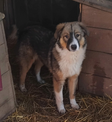 Pomana est un chiot elle aura tout à apprendre. Elle vit en liberté avec les autres chiens.