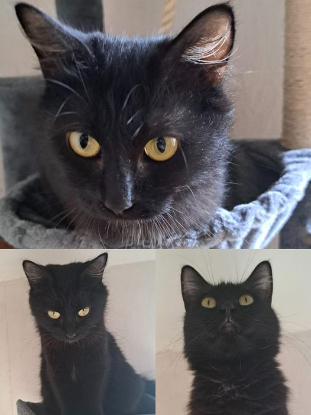 Zélia est une femelle noire poils mi longs d' environ 1 an.
