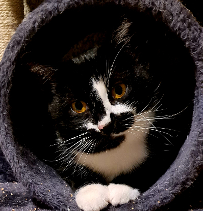? Val est un beau chat noir et blanc, joueur et câlin. Plutôt curieux de nature, il vient vite vers l'humain pour jouer ou avoir des gratouilles. Il semble être sensible aux bruits et à trop d'agitation.
