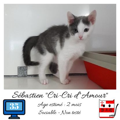 URGENCE EUTHANASIE ! Sébastien Cri-Cri d'Amour est un mâle de 2 mois sociable qui vous attend dans une fourrière du 35. ATTENTION SORTIE AU PLUS TARD LE 31/07/2020 (avant euthanasie) ! Pour adopter, c'est facile : ➡️ On se rend sur la page facebook d'Urgence Fourrière de Bretagne (UFB) -> https://www.facebook.com/sosfourrieresbreizh/ ➡️ On vient en message privé sur la page UFB ➡️ On remplit le questionnaire ➡️ Si le questionnaire est validé, on se rend disponible pour la pré-visite ➡️ On se rend aussi disponible pour venir chercher le loulou en fourrière Les chats sortent de fourrière primo-vaccinés et identifiés. Restera à charge de l’adoptant le rappel de vaccin et la stérilisation qui est OBLIGATOIRE. Les femelles en fourrière ayant été trouvées dans la rue, il y a fort à parier que nombre d'entre elles en âge de l'être soient gestantes ... ---- A PROPOS D'URGENCE FOURRIERE DE BRETAGNE (UFB) Nous sommes un COLLECTIF d'ASSOCIATIONS DE PROTECTION ANIMALE (qui rassemble notamment Moustaches et Compagnie, Bêtes de Scène, les Pachas, Chats Libres de Berné, etc, etc....) Le BUT de ce collectif d'associations est donc de SORTIR ces animaux des fourrières surchargées en les faisant ADOPTER de manière LEGALE par des familles ou en leur trouvant des FAMILLES D'ACCUEIL lorsque des places en association se libèrent.