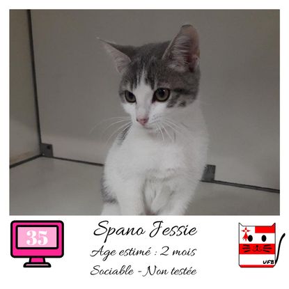 URGENCE EUTHANASIE ! Spano Jessie est une femelle de 2 mois sociable qui vous attend dans une fourrière du 35. ATTENTION SORTIE AU PLUS TARD LE 31/07/2020 (avant euthanasie) ! Pour adopter, c'est facile : ➡️ On se rend sur la page facebook d'Urgence Fourrière de Bretagne (UFB) -> https://www.facebook.com/sosfourrieresbreizh/ ➡️ On vient en message privé sur la page UFB ➡️ On remplit le questionnaire ➡️ Si le questionnaire est validé, on se rend disponible pour la pré-visite ➡️ On se rend aussi disponible pour venir chercher le loulou en fourrière Les chats sortent de fourrière primo-vaccinés et identifiés. Restera à charge de l’adoptant le rappel de vaccin et la stérilisation qui est OBLIGATOIRE. Les femelles en fourrière ayant été trouvées dans la rue, il y a fort à parier que nombre d'entre elles en âge de l'être soient gestantes ... ---- A PROPOS D'URGENCE FOURRIERE DE BRETAGNE (UFB) Nous sommes un COLLECTIF d'ASSOCIATIONS DE PROTECTION ANIMALE (qui rassemble notamment Moustaches et Compagnie, Bêtes de Scène, les Pachas, Chats Libres de Berné, etc, etc....) Le BUT de ce collectif d'associations est donc de SORTIR ces animaux des fourrières surchargées en les faisant ADOPTER de manière LEGALE par des familles ou en leur trouvant des FAMILLES D'ACCUEIL lorsque des places en association se libèrent.