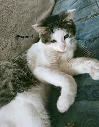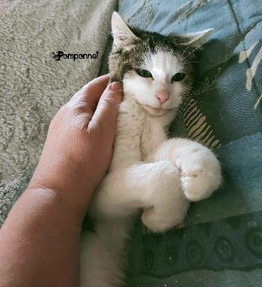 POMPONNET devait appartenir à quelqu’un car il est très sociable et câlin et il connaissait déjà l’usage de la litière. Nous avons fait le tour du village, mis des annonces et publié sur les réseaux sociaux mais personne ne connait ce chaton.