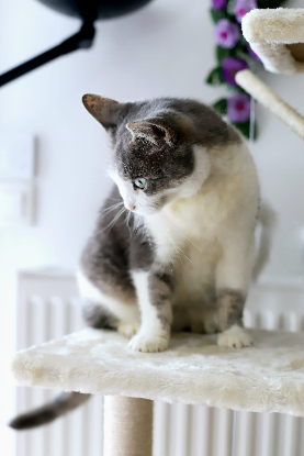 Elle s’entend bien avec les autres chats, mmais elle reste craintive quand il y a des jeunes enfants.