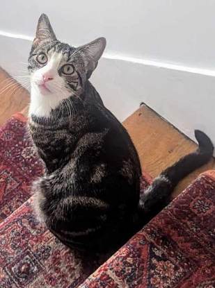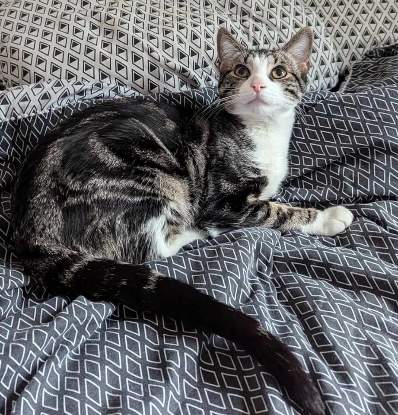 C'est un chat très curieux et hyper expressif avec ses grands yeux dorés. C'est un petit timide qui choisi ses moments câlins mais dans ces moments précieux il deviendra une machine a ronron adorable.